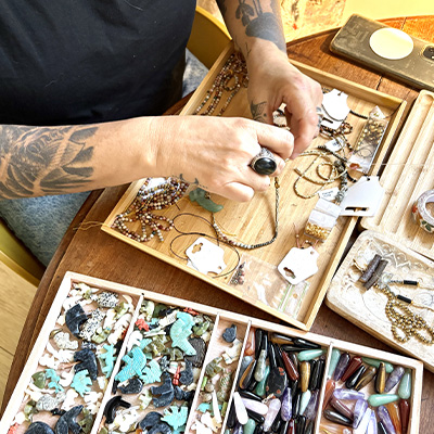 Ici, j’accueille celles et ceux qui souhaitent vivre une expérience unique : fabriquer son propre bijou, son objet de rituel personnel, c’est se reconnecter à la matière, à l’énergie, à soi, poser une intention et repartir avec un souvenir vibrant.