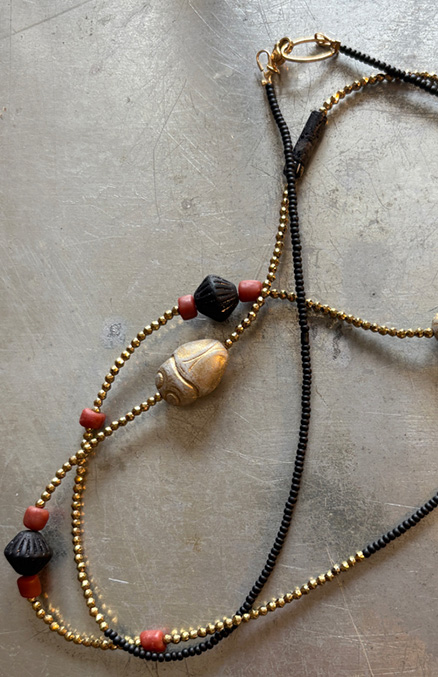Des bijoux totem, des parures féminines et puissantes. Des pierres, des matières nobles, des textures inspirantes… Pousser la porte de L’Apprentie à Anglet, c’est pénétrer dans un monde nourri d’histoires, de cultures, de rituels et de symboles rassemblés dans un même geste de création.