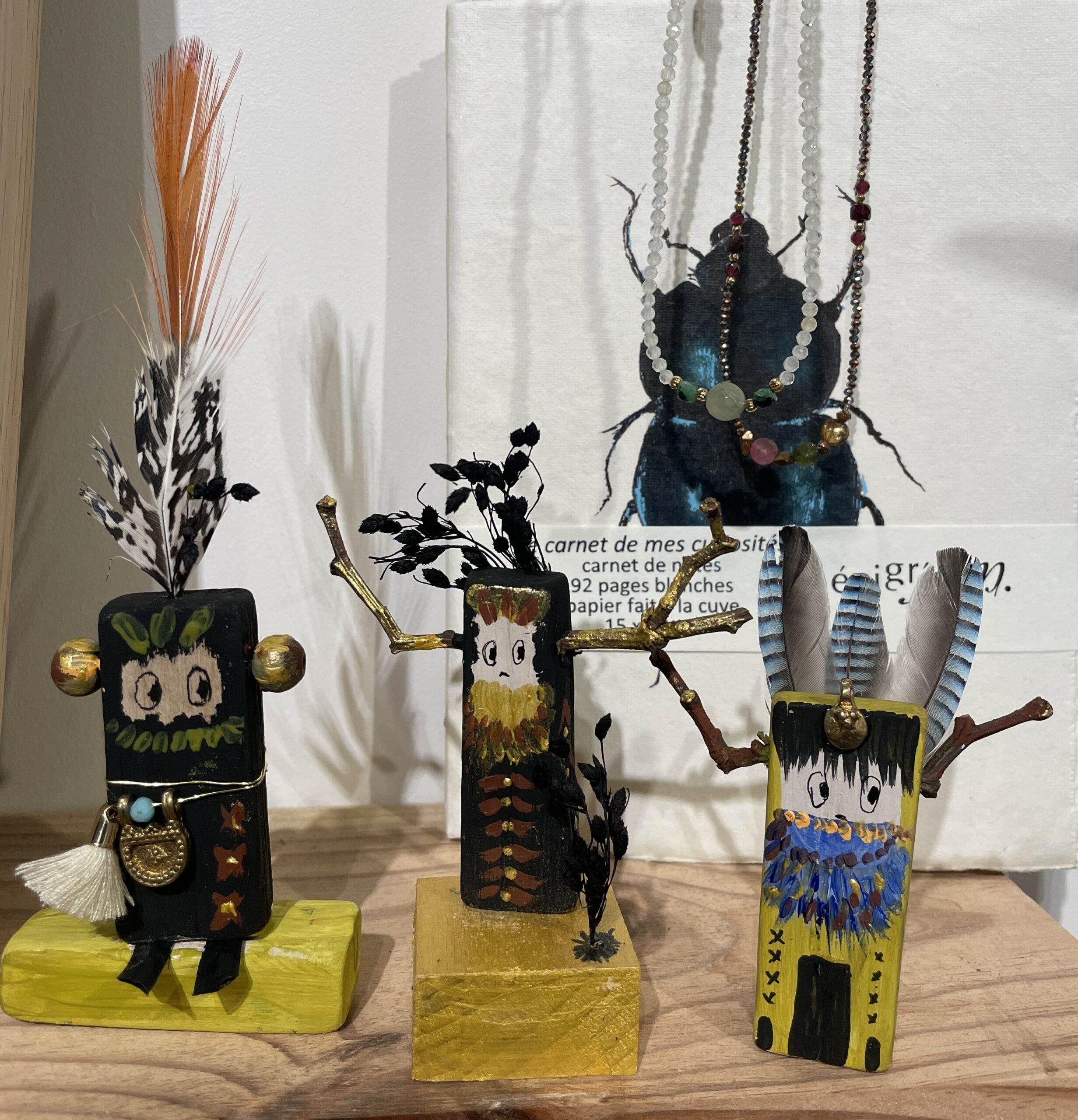 Représentants du monde de l’invisible chez les Hopis d’Amérique du Nord, les kachinas sont des esprits liés à la nature. Ils s’incarnent dans des danseurs masqués et costumés et sont aussi représentés par des poupées de bois offertes aux enfants. Elles sont faites pour honorer les esprits, esprit de la pluie, esprit de l’abondance, de la protection……… Après un voyage sonore, fabriquez votre Kachina.