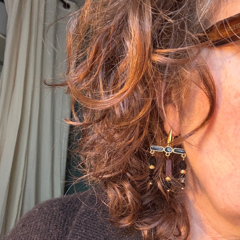 Boucles esprit baroque en perles de verre de bohème et acrylique.