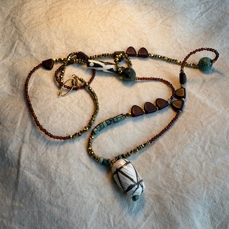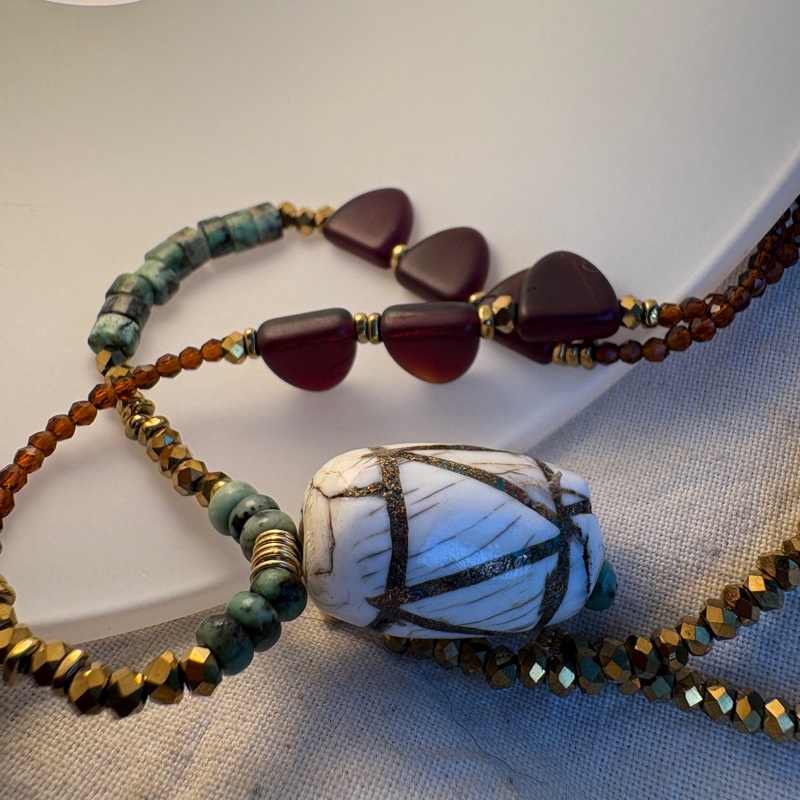Un sautoir au caractère brut et bohème, pensé comme un souvenir de voyage, pour celles et ceux qui aiment les bijoux qui racontent une histoire.