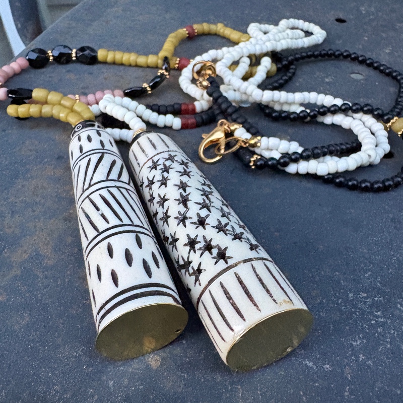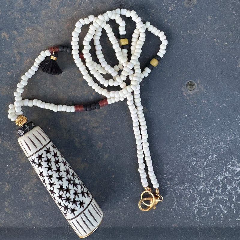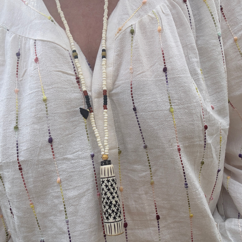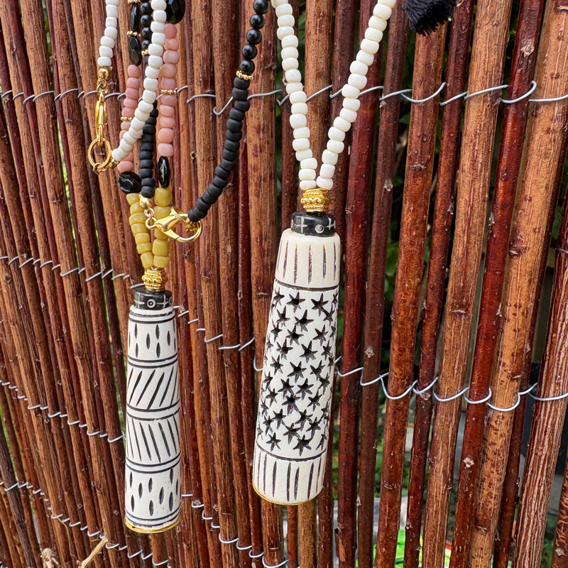 Sautoir Céramique Africaine à motifs étoiles
