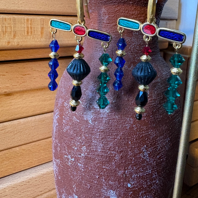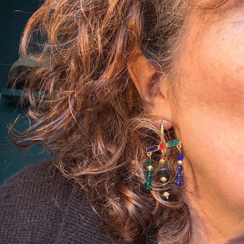 Boucles esprit baroque en perles de verre de bohème et acrylique.