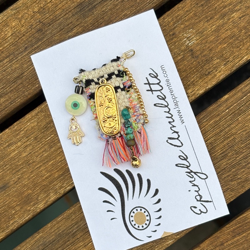 Apportez une touche de magie et de protection à votre quotidien avec cette Épingle Amulette, à porter sur une veste, un col de manteau ou un sac.