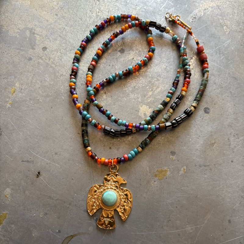 En son centre, un pendentif représentant un aigle maya aztèque symbolise la force, la liberté et la sagesse ancestrale.