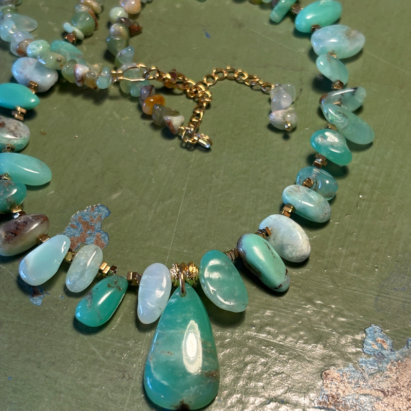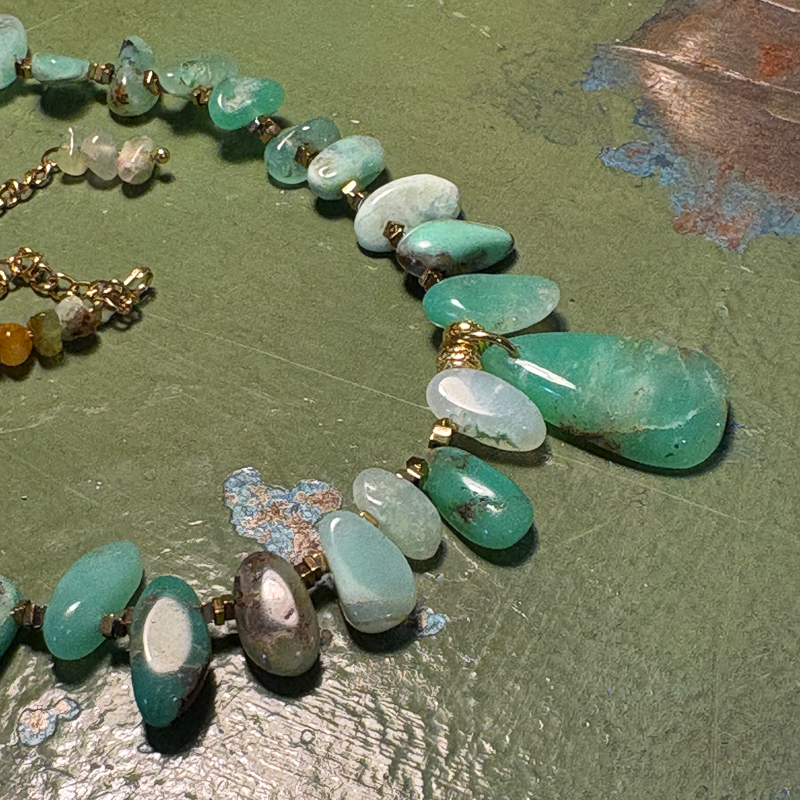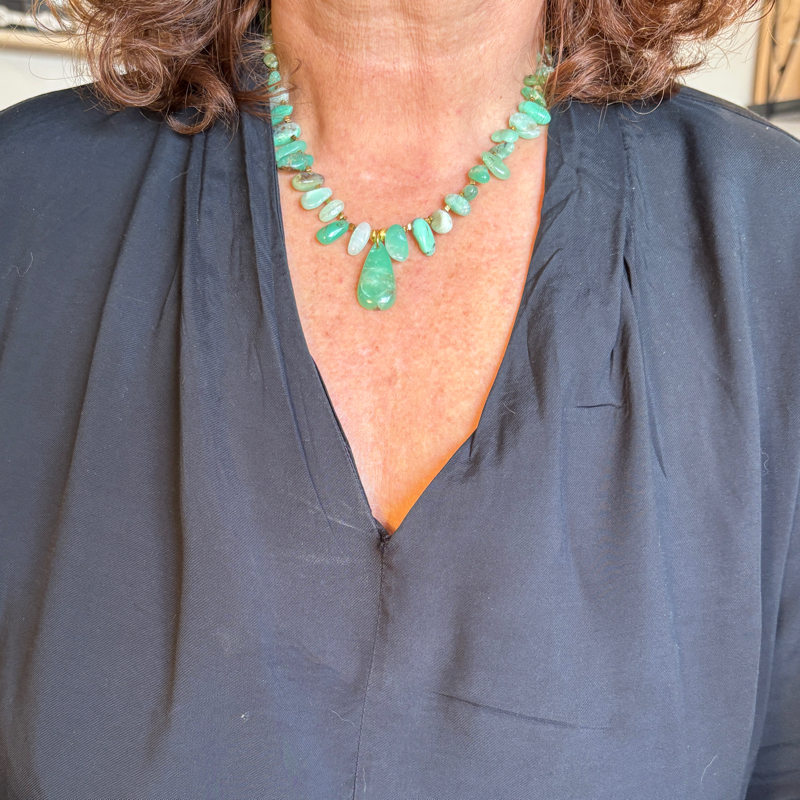 La chrysoprase est une pierre fine d’un vert tendre à vert pomme, souvent légèrement translucide.