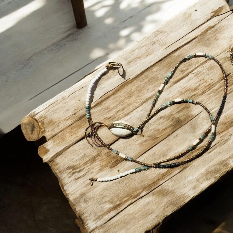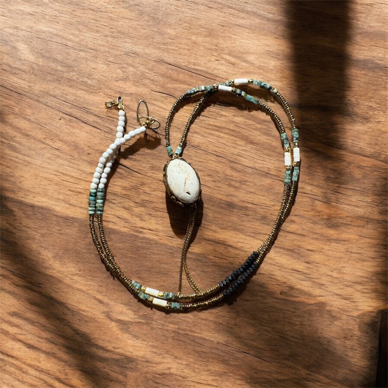 Un sautoir au caractère brut et bohème, pensé comme un souvenir de voyage, pour celles et ceux qui aiment les bijoux qui racontent une histoire.