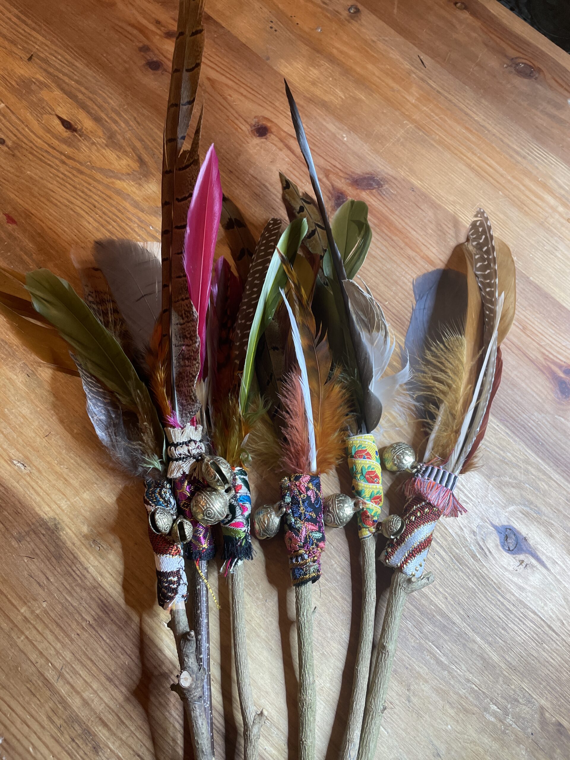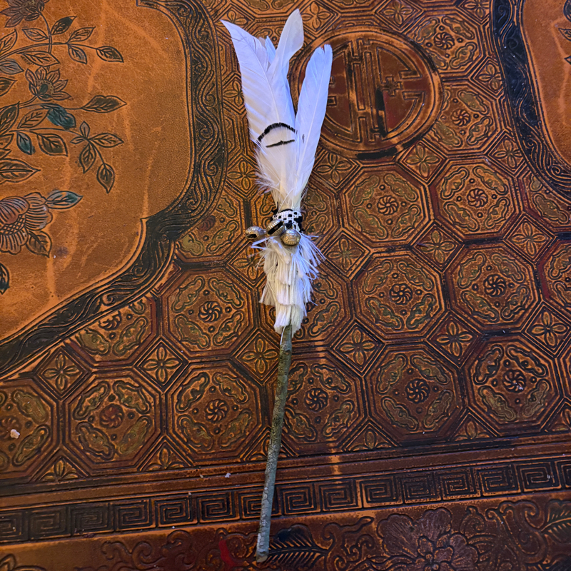 Plume de fumigation. Bois de noisetier et plume d’oie et de faisan lady.