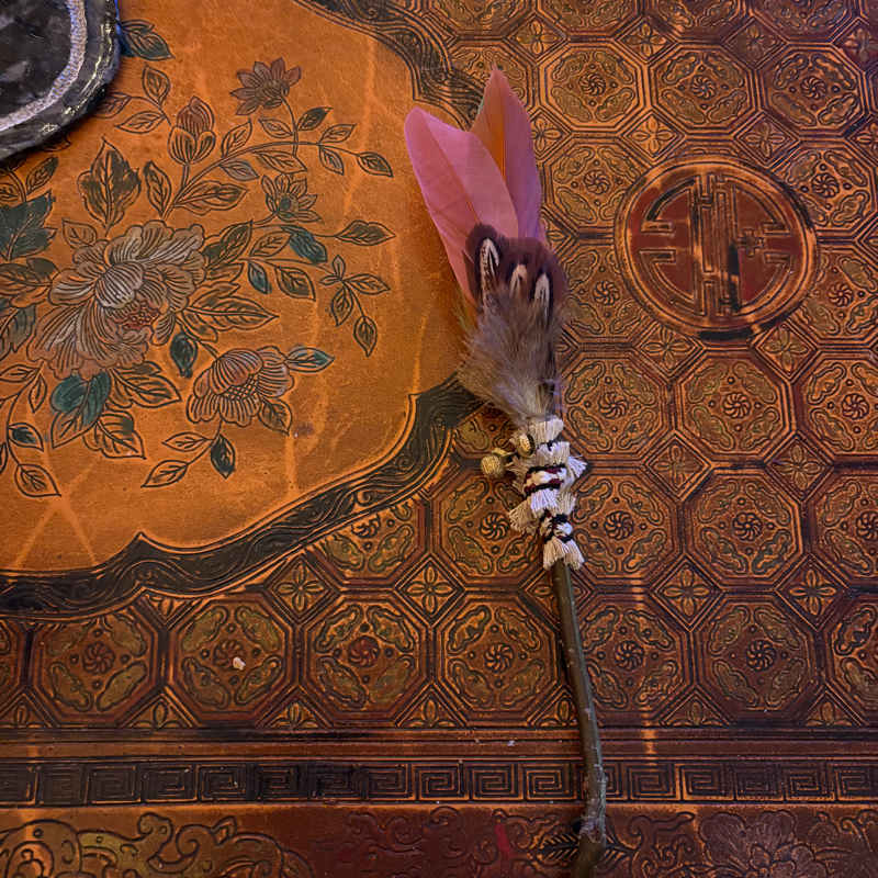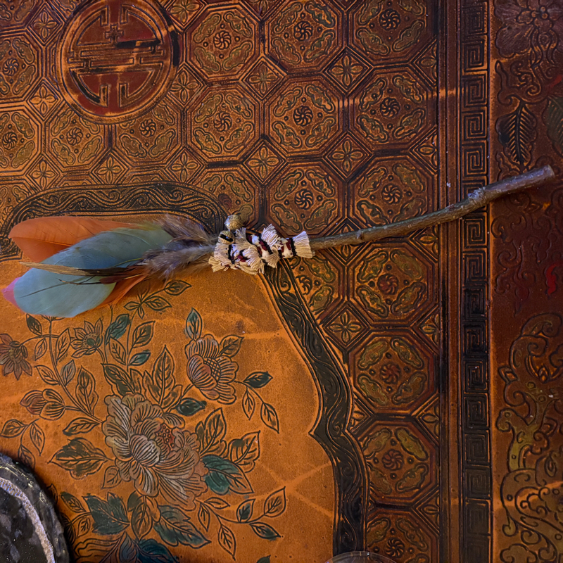 Plume de fumigation. Bois de noisetier et plume d’oie et de faisan.